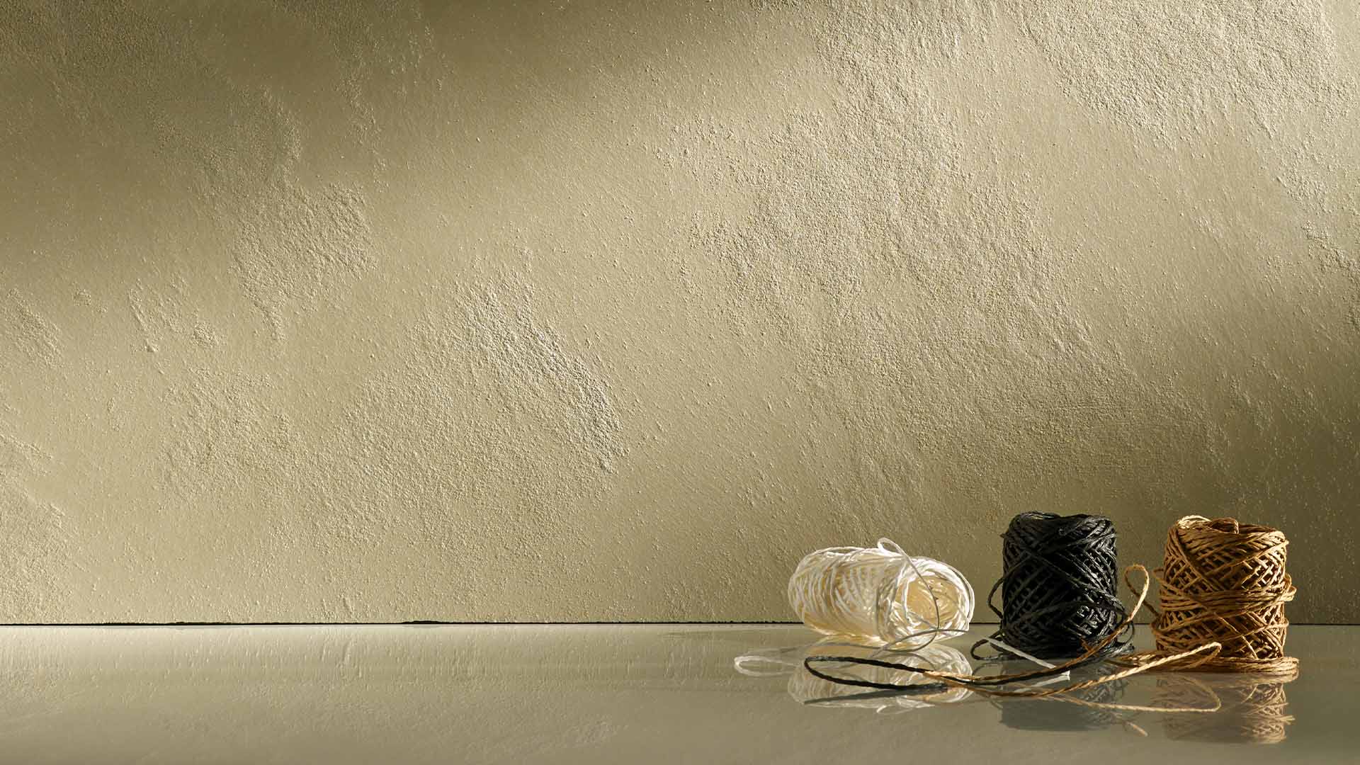 Textured metallic decorative finish for interiors, available as silver and gold base