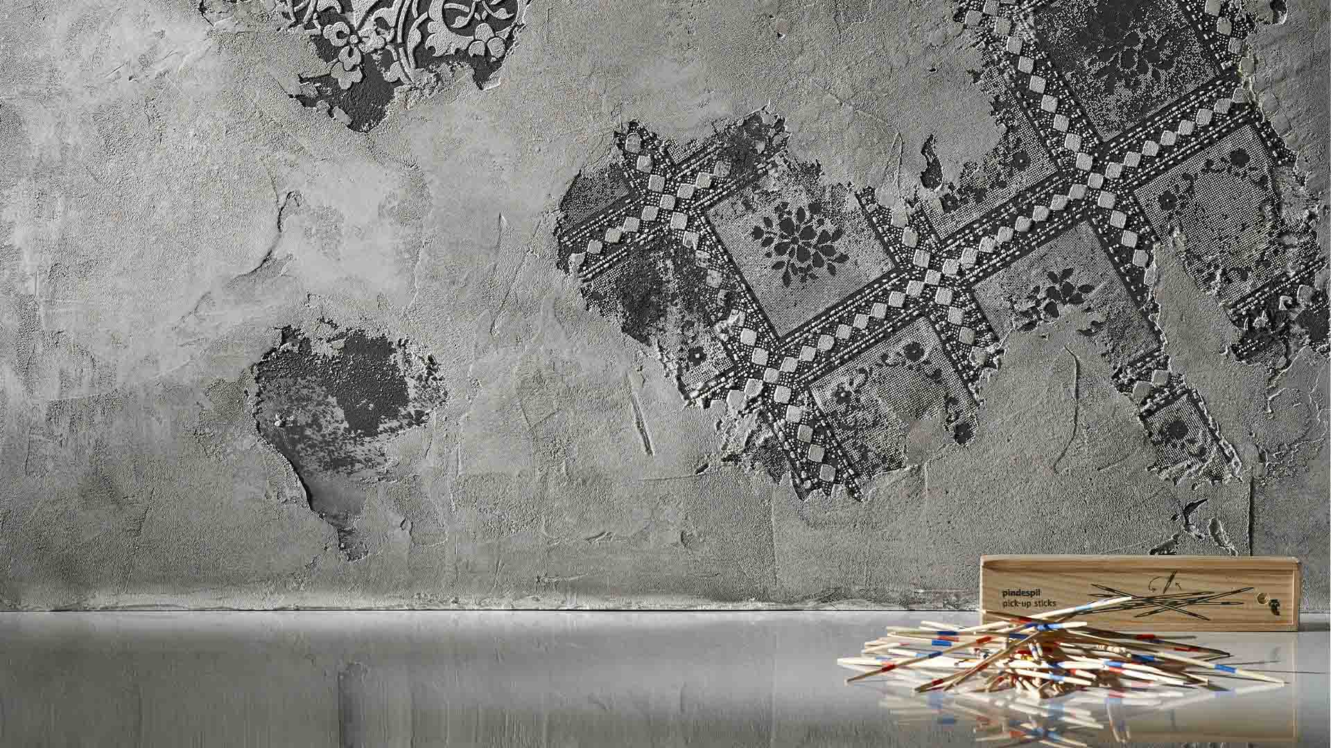 Acoperire decorativă pentru interioare, pe bază de var hidraulic cu granulație mai mare.
